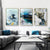 Tableau Abstrait bleu, blanc et or, Triptyque pour décorer votre salon.