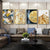 Découvrez vite notre collection de quatre tableaux abstraits géométriques, tous plus colorés les uns que les autres ! Parfaits pour apporter une touche de modernité à votre décoration intérieure, ces toiles géométriques se distinguent par une variété de motifs. Vous y trouverez des formes géométriques, une lune masquée par un vol d'oiseau et une dune rappelant le désert. La couleur dominante de ces tableaux est le doré, apportant ainsi lumière et éclat à votre intérieur. Idéal pour illuminer et faire rayonner n'importe quelle pièce, ces œuvres géométriques seront un choix parfait pour un décor contemporain et élégant.