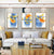 Tableau Abstrait Bleu et Orange, Triptyque, feuilles d'automne.