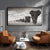 Tableau Ethnique Noir et Blanc Troupeau d'Éléphants au cœur de la Savane.